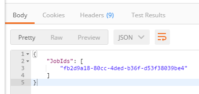 Back to our ADF pipeline. After the first Web activity POST request to the Azure Automation Runbook the job execution status isn’t going to be returned. It will only give us the Runbook Job ID, and as an array, annoyingly. Example below of the body returned via Postman (great tool in this new world of API everything).