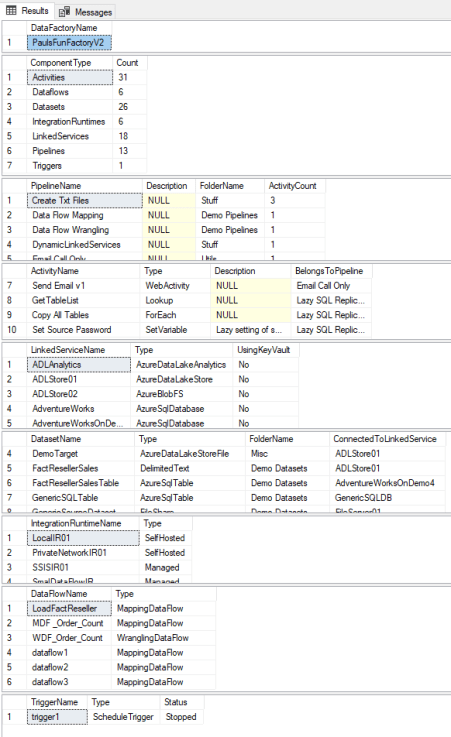 I’ll see if I can create a PBI and SSRS report off the output and publish. Enumerating each data flow step would be even better, but I haven’t checked to see if they are in the ARM yet (in between job interviews and pluralsight courses!).