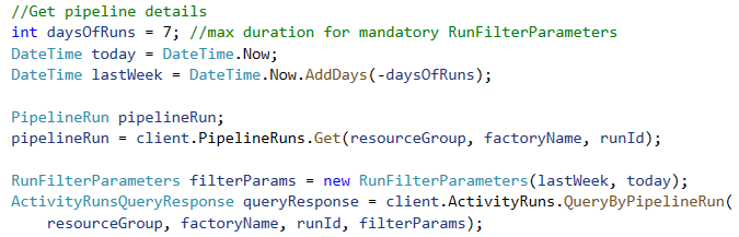 In my Function, after creating the ADF client, I firstly query my Pipeline using the Run ID as the primary filter and use these to get the Activity Run details.