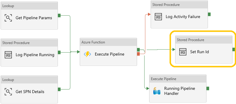 The only significant Data Factory change in this release has been to add a stored procedure activity to the Child pipeline for the purposes of capturing the pipeline Run ID as detailed above in the Database Changes section. Below is a snippet of the Activities from inside the Child ForEach iterator. The full Activity chain picture has also been updated in the code repository PowerPoint file if you’d like a fresh view of everything in v1.5 of the framework.