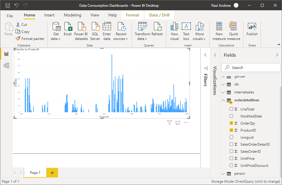 Consume – using a Power BI workbook published and connected to by Synapse Workspace I was able to work with the raw/simple datasets.