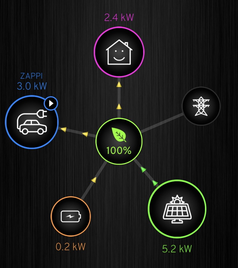 Google it for yourself and do some comparisons of the different charging units. The Zappi setting is called ‘Eco+’ which means only the excess energy generated from the solar panels is sent to the car. This can further be configured to use or not the power stored in the Tesla Powerwall battery. Then depending on the sunshine available the Zappi will send as much of that excess energy to the car.