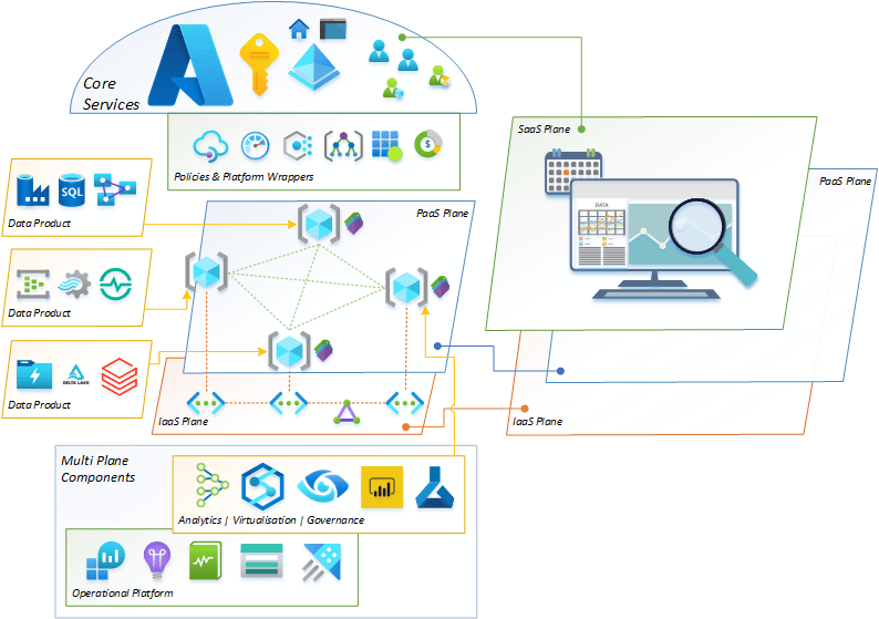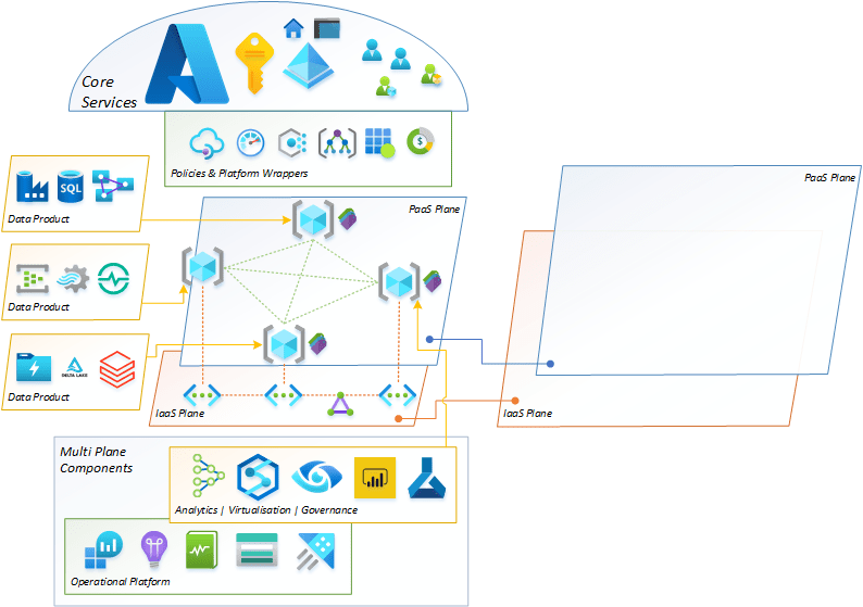 In my current data mesh logical view, we have the IaaS plane, and the PaaS plane. We explored these in the context of our data product interfaces in part 3 of the Data Mesh vs Azure blog series. All fine, and I stand by those conclusions, (in my opinion) this remains a good logical separation of the resources we deploy in our potential Azure data mesh architecture.